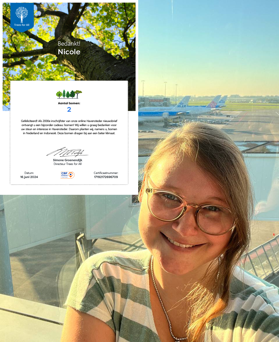 Nicole schreef zich als tweeduizendste in en daarom planten we twee bomen via Trees For All. Eén boom planten we in Nederland en voor de tweede boom koos Nicole een plek in India voor herbebossing. Nicole kreeg een certificaat met haar naam erop.