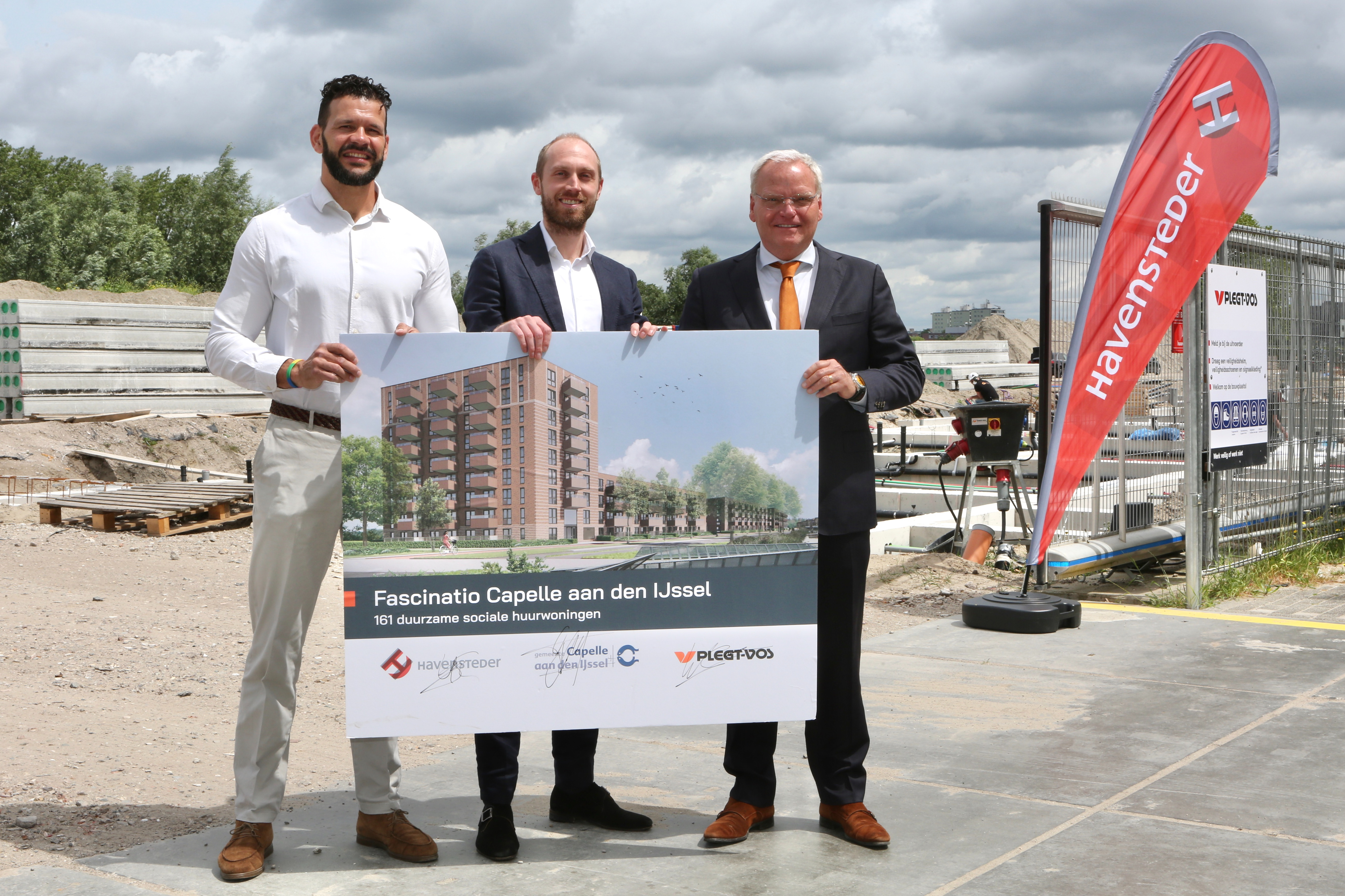 Aan het begin van de middag kwamen we op de bouwplaats samen met onze samenwerkingspartners; de gemeente Capelle aan den IJssel en bouwer Plegt-Vos. Daar vertelde Wouter Gouman, Commercieel Directeur van bouwer Plegt-Vos, zowel wethouder Eric Faassen als Havensteder Directeur Onderhoud & Ontwikkeling Urias Santos Bakker over onder andere de duurzame aspecten van de nieuwe energiezuinige woningen. Deze ontmoeting markeert een belangrijke mijlpaal in het project en benadrukt de betrokkenheid van alle partijen bij de uitbreiding van deze nieuwe woonwijk.